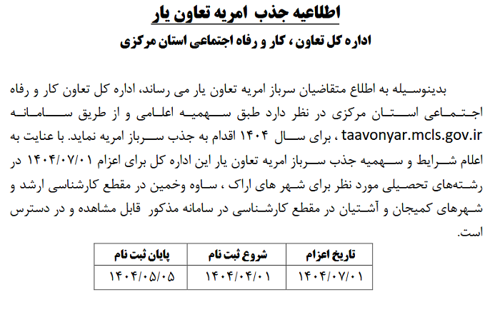 اطلاعیه جذب امریه تعاون یار ۱۱ تیر ۱۴۰۴ | ۱۲:۰۴ کد : ۵۲۷۴۸ اطلاعیه ارسال به دیگران نام شما ایمیل شما ایمیل دریافتکننده ارسال انصراف تعداد بازدید:۲۴۰ اطلاعیه جذب امریه تعاون یار